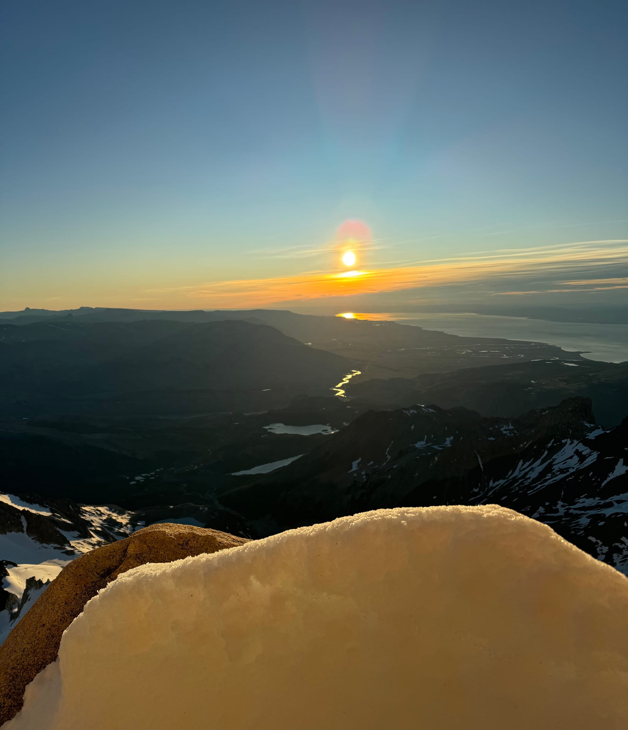 Too late to bail now, since it's faster to go up and over rather than backtrack, so upwards we went. At 3:45am we summited, and if not for the mysterious horseshoe that lives on the the summit block of Cerro Chaltén, we could not have known we were on top. We started down immediately.